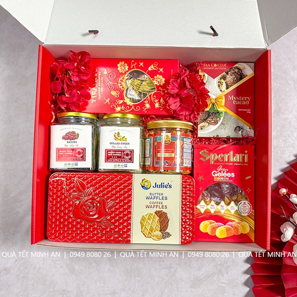 Hộp quà tết 2026 luôn là ưu tiên hàng đầu của các công ty khi lựa chọn sản phẩm quà tết cho khách hàng, nhân viên. Hộp quà tết với sản phẩm chất lượng được lựa chọn đầy đủ mặt hàng như Bánh, kẹo, socola, hạt dinh dưỡng… để tặng khách hàng tượng trưng cho sự sung túc và thịnh vượng.