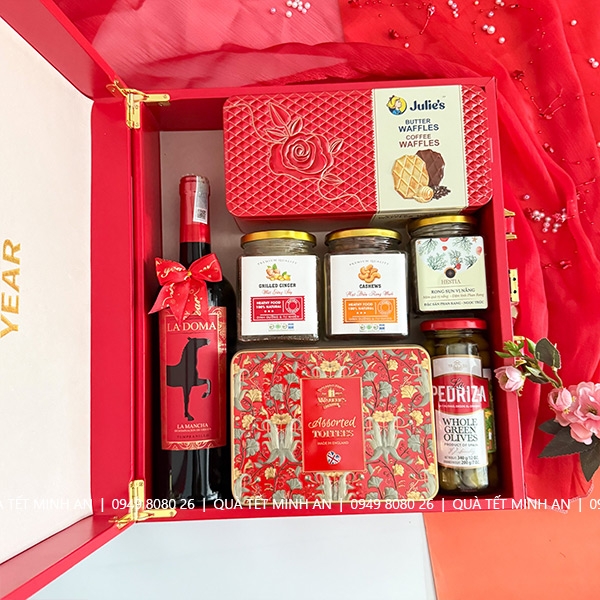 Hộp Quà tết luôn là ưu tiên hàng đầu của các công ty khi lựa chọn sản phẩm quà tết cho khách hàng, nhân viên. Hộp quà tết với sản phẩm chất lượng được lựa chọn đầy đủ mặt hàng như Bánh, kẹo, socola, hạt dinh dưỡng… để tặng khách hàng tượng trưng cho sự sung túc và thịnh vượng.